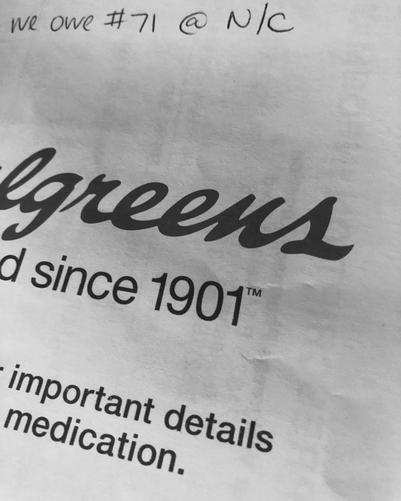 Thankfully the pharmacy had a few pills in stock. But only a few. As you can see they owe me 71. I can go back later this week to get the rest. That’s fine. It sure beats all the times I am informed that they are out completely.