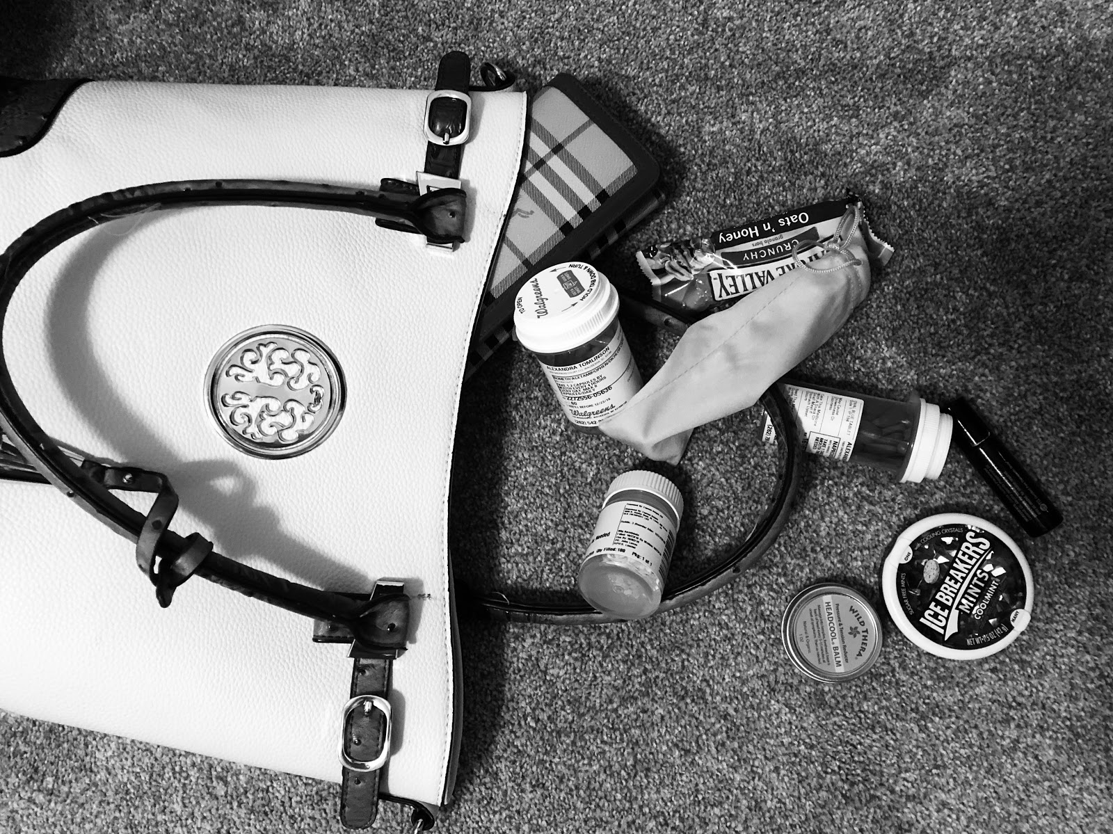 This to go bag of sorts, shows the rest of the world who we are. I used to be embarrassed sneaking a pill here or there. Thankfully, I’m long past that.